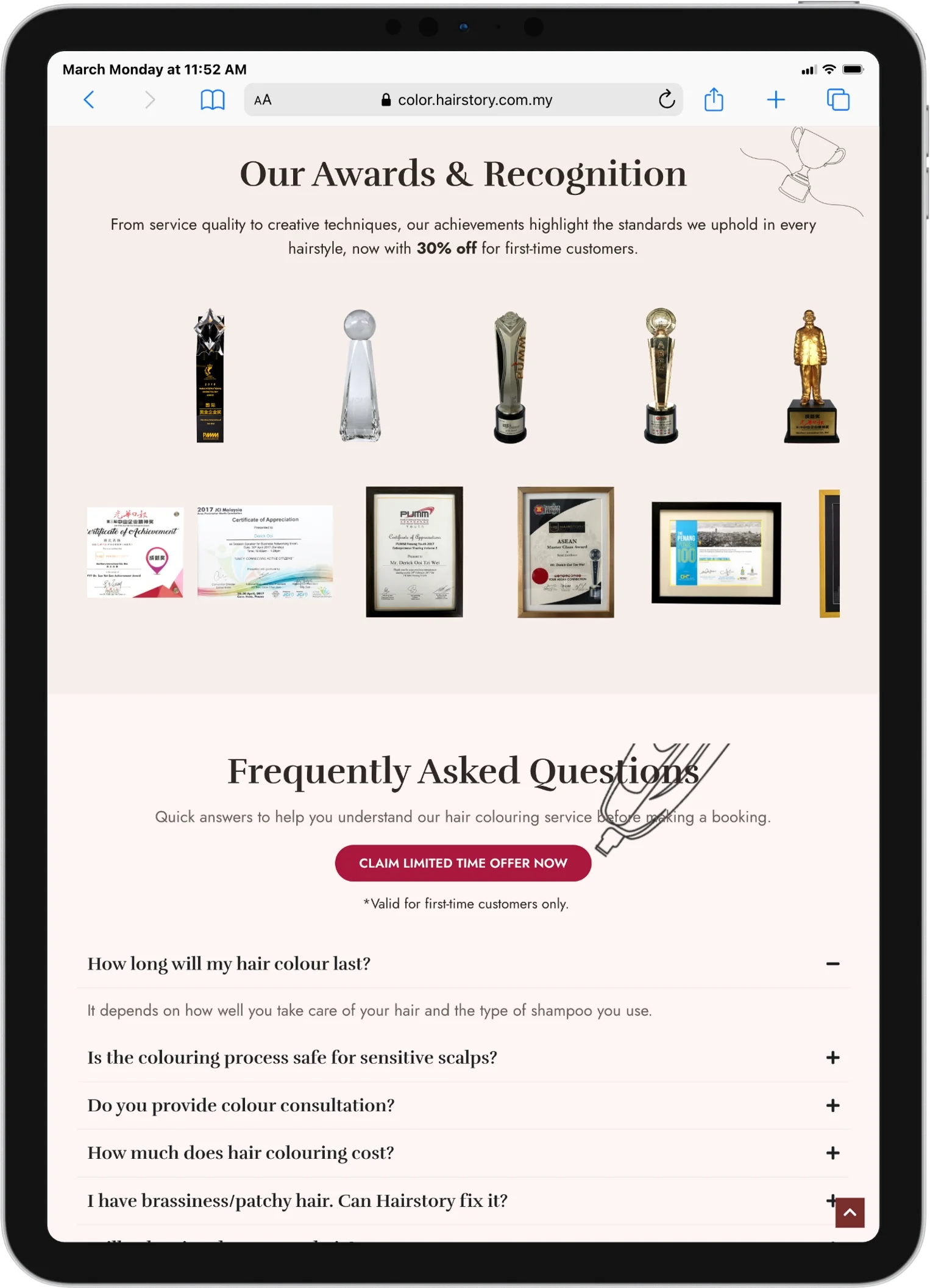 We developed a conversion-focused landing page designed to showcase Hairstory’s coloring services while driving user action. Key implementations included: