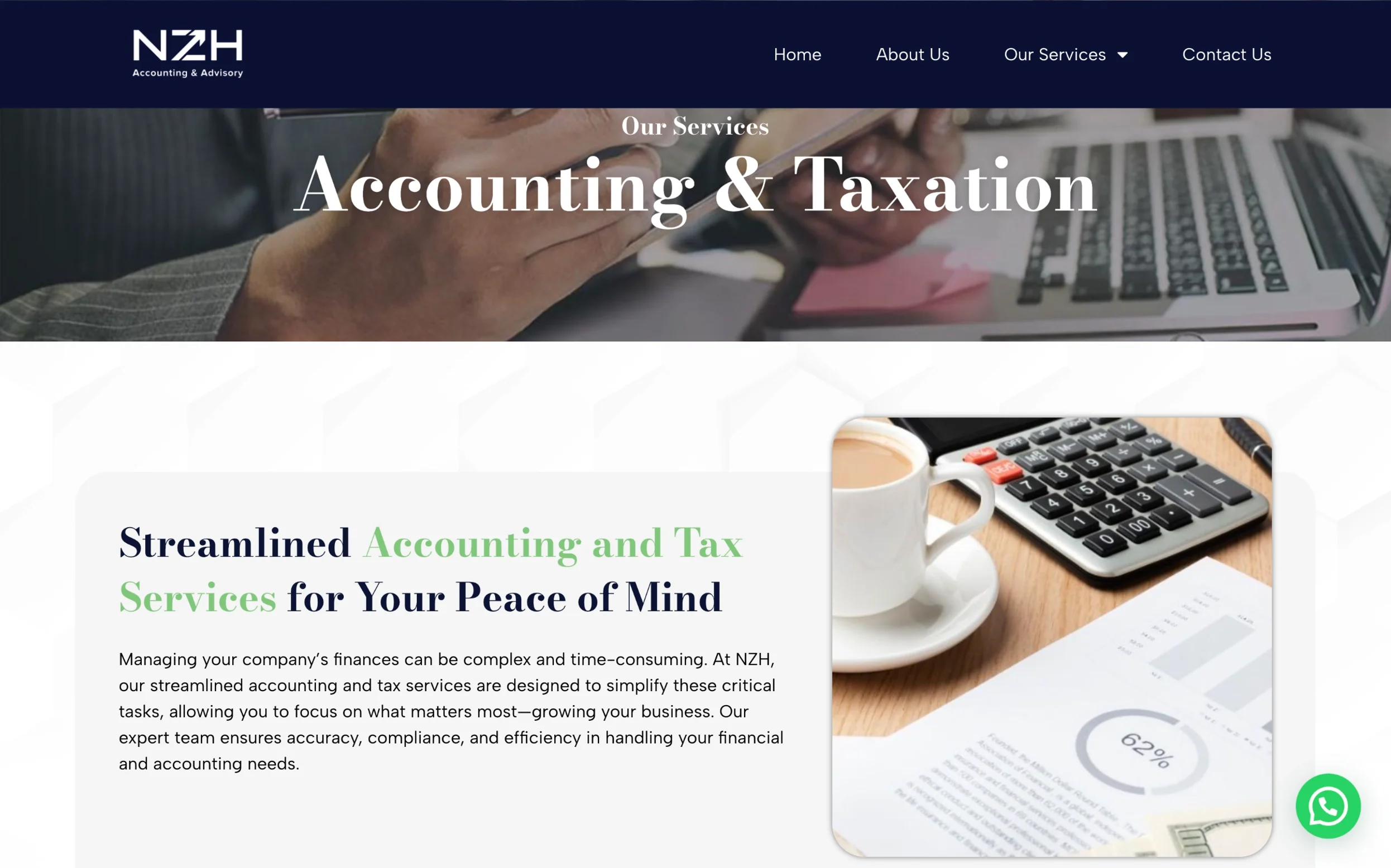 NZH Accounting & Advisory aimed to establish a professional online presence that clearly communicates its expertise in helping businesses thrive. A structured website was needed to present the company’s range of services in a clear and trustworthy manner, making it easier for potential clients to understand offerings and engage confidently with the firm.
