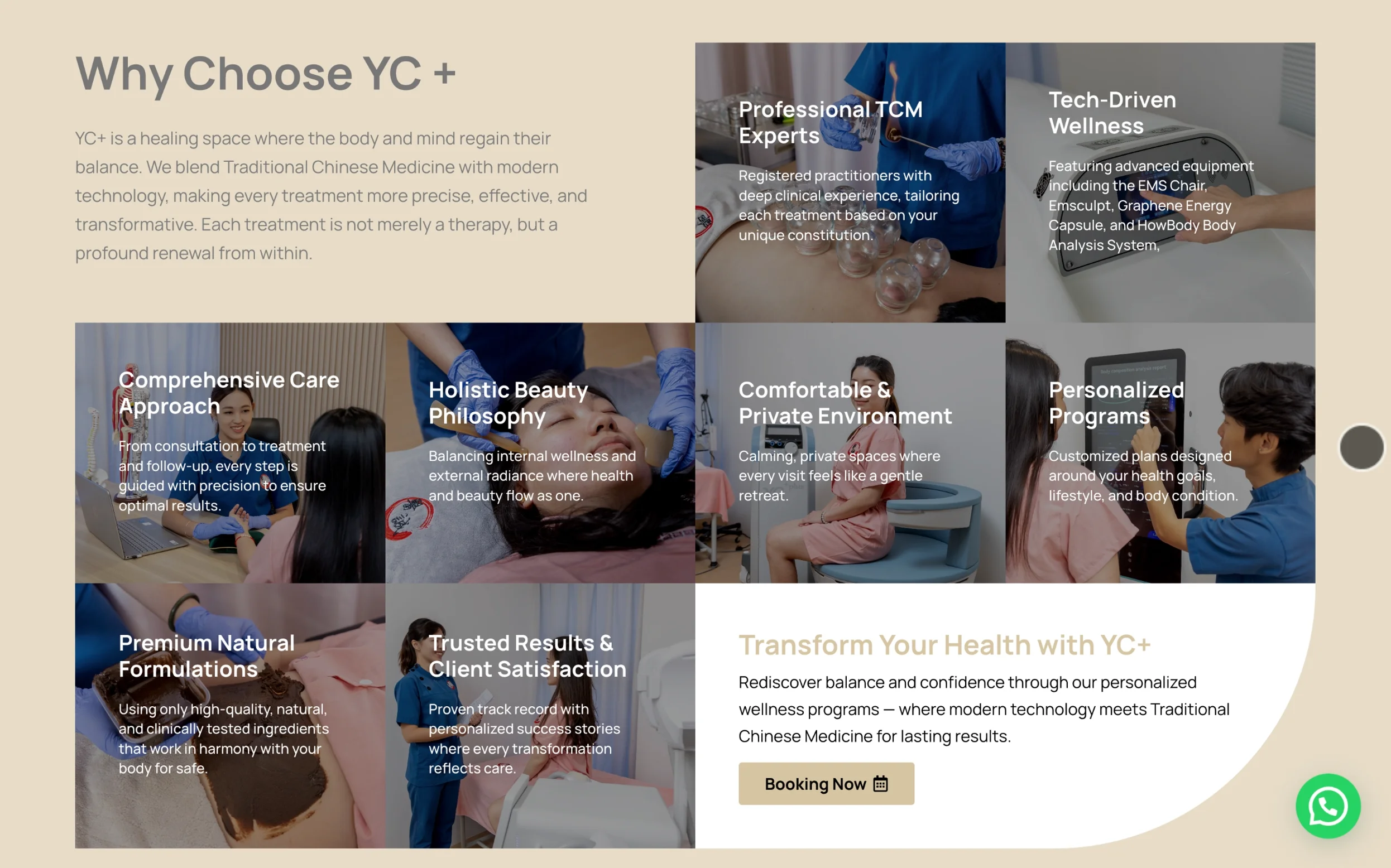 With its combination of traditional Chinese medicine and modern therapeutic technology, YC Plus TCM required a digital platform that could clearly communicate this unique positioning. A bilingual website was essential to reach a wider community while presenting treatments in a structured, easy-to-understand format. In addition, a focused landing experience would help guide visitors more effectively toward enquiries and appointment bookings, supporting the clinic’s growth and outreach goals.